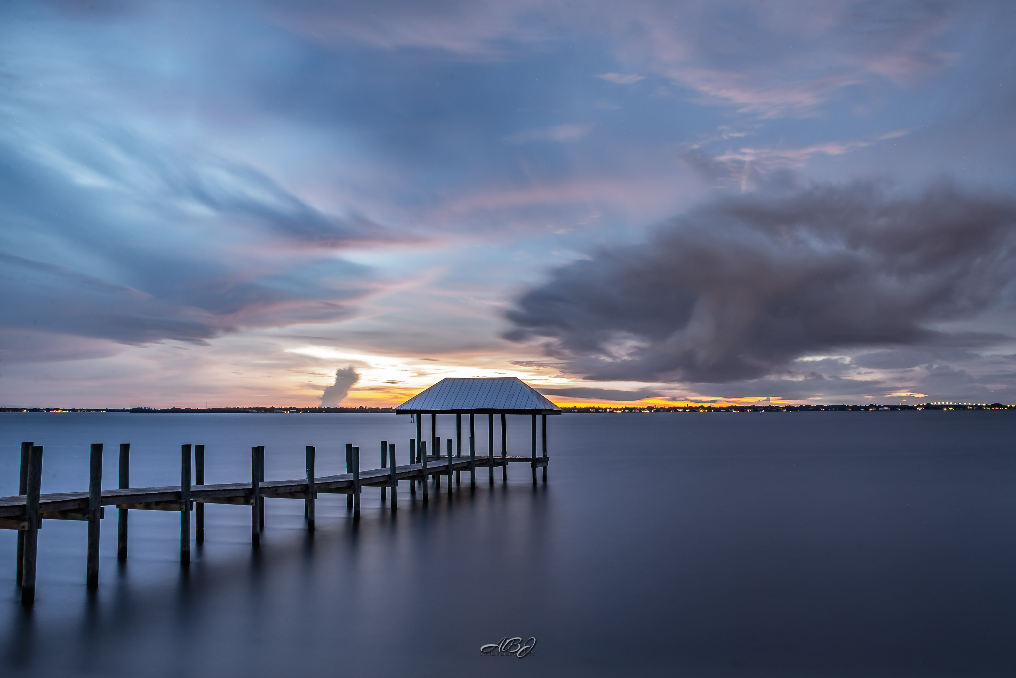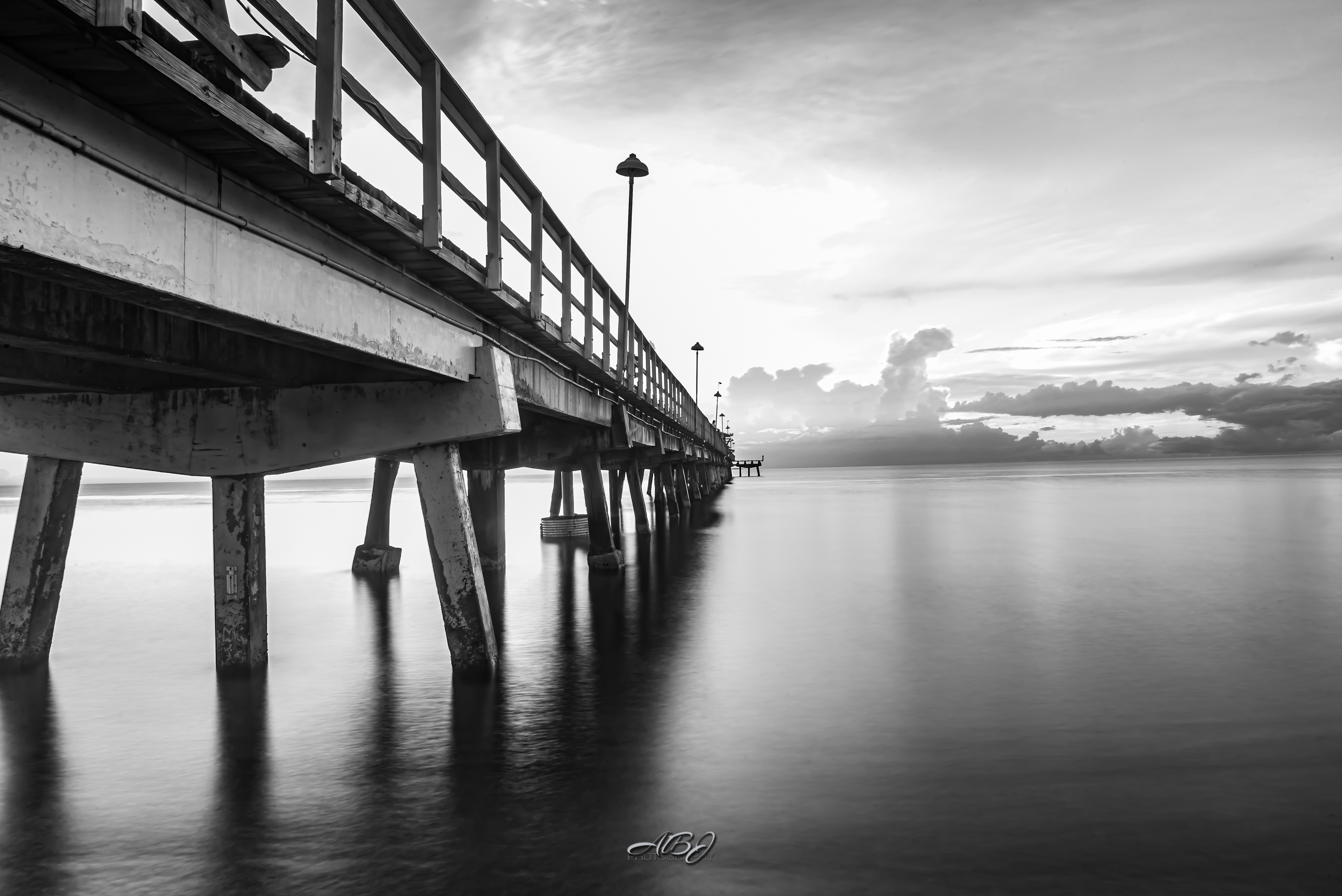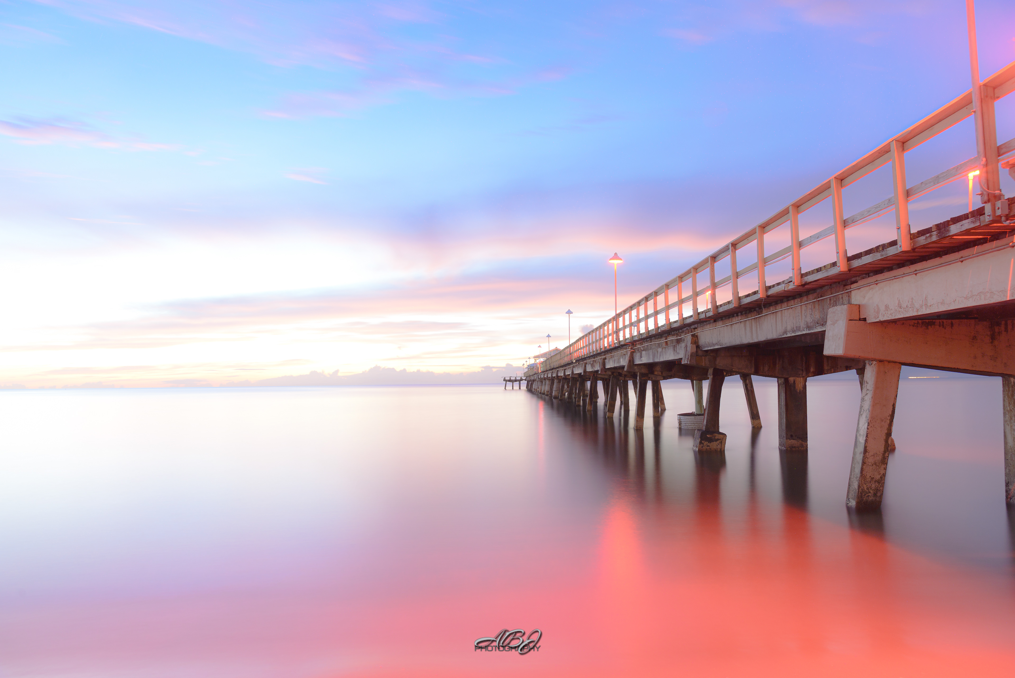 "Fishing Pier III" - Beautiful view of a fishing pier at the beach during sunrise.